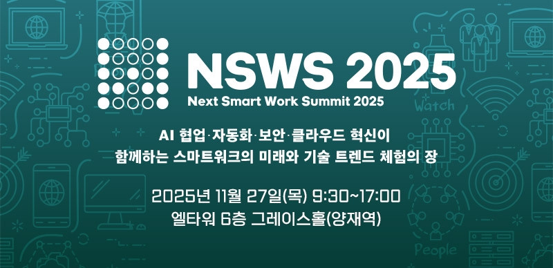AI 기술이 전 산업의 중심으로 자리 잡으며, 기업은 단순한 디지털 전환을 넘어 AI 퍼스트(AI-First) 기반의 스마트워크 전략이 필수 요소가 되고 있습니다. Next Smart Work Summit 2025는 이러한 흐름 속에서 AI 협업툴, 가상비서, RPA, AIOps, 클라우드, 보안 등 차세대 스마트워크 기술을 한자리에서 소개하며 실제 산업 현장에서 검증된 자동화·보안·운영 효율화 전략을 공유합니다.